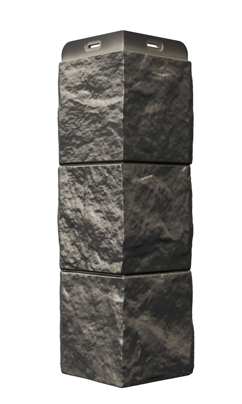 Углы в цвете «перламутровый» — идеальное дополнение для фасадных панелей с эффектом крупноформатной каменной кладки. Спокойный многогранный цвет и швы в тон материала делают стык панели и угла практически незаметным.
